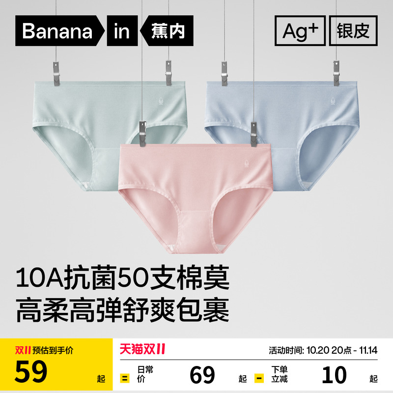 3件|蕉内银皮301Color可爱印花女三角裤莫代尔少女纯棉女士内裤