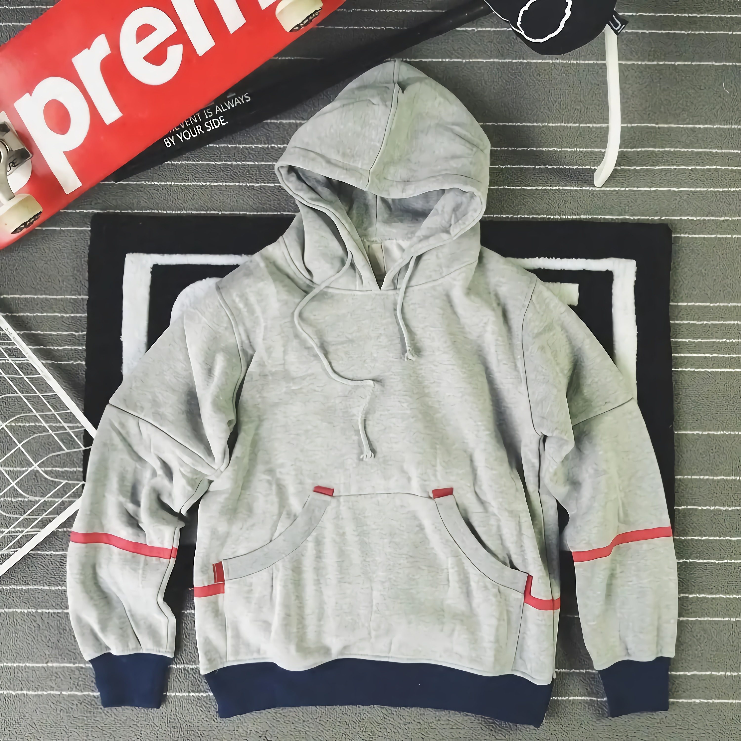 陈冠希同款外套男潮加厚加绒保暖华夫格连帽套头衫兵马俑内搭卫衣