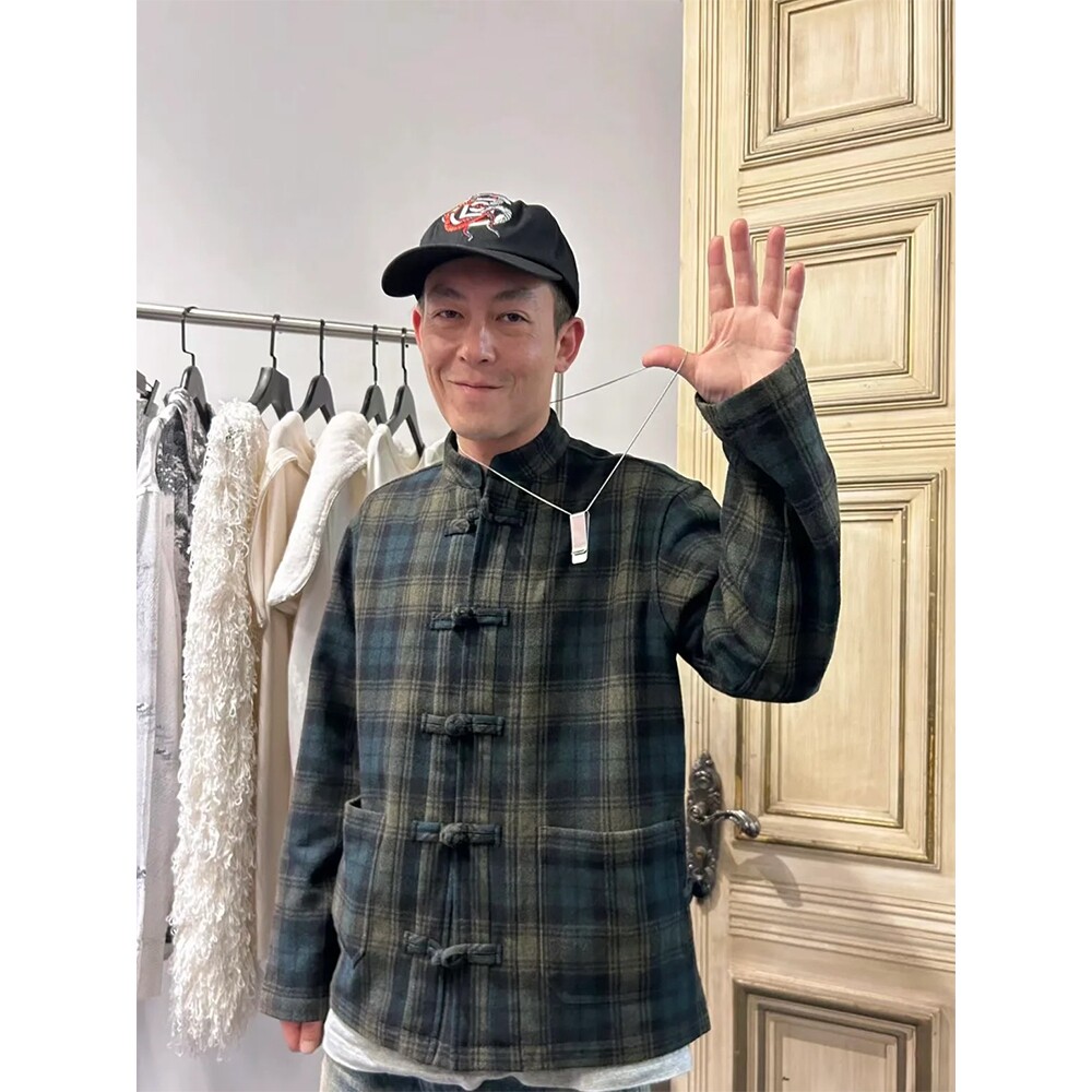 陈冠希同款唐装格纹外套男中国风盘扣羊毛长袖衬衫休闲立领夹克潮