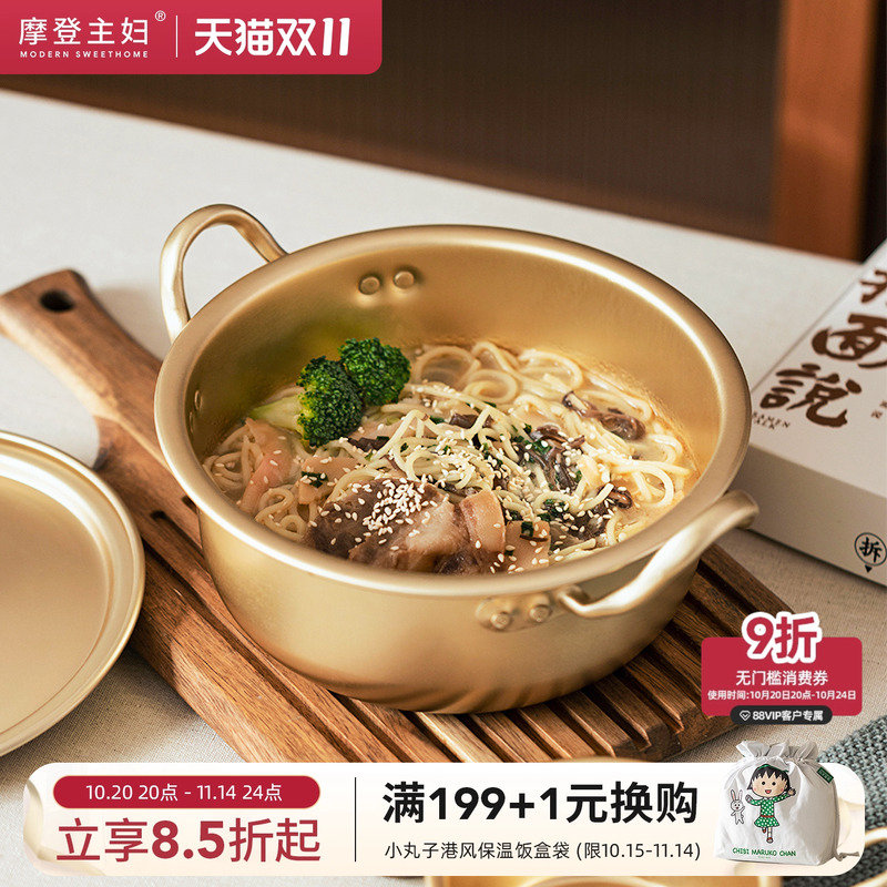 摩登主妇韩式泡面锅家用煮方便面韩国拉面锅一人食双耳汤锅小铝锅