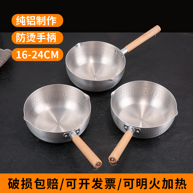 雪平锅 铝制木柄不粘煮面粉煮粥煮汤瓢奶锅 日本拉面泡面铝锅商用
