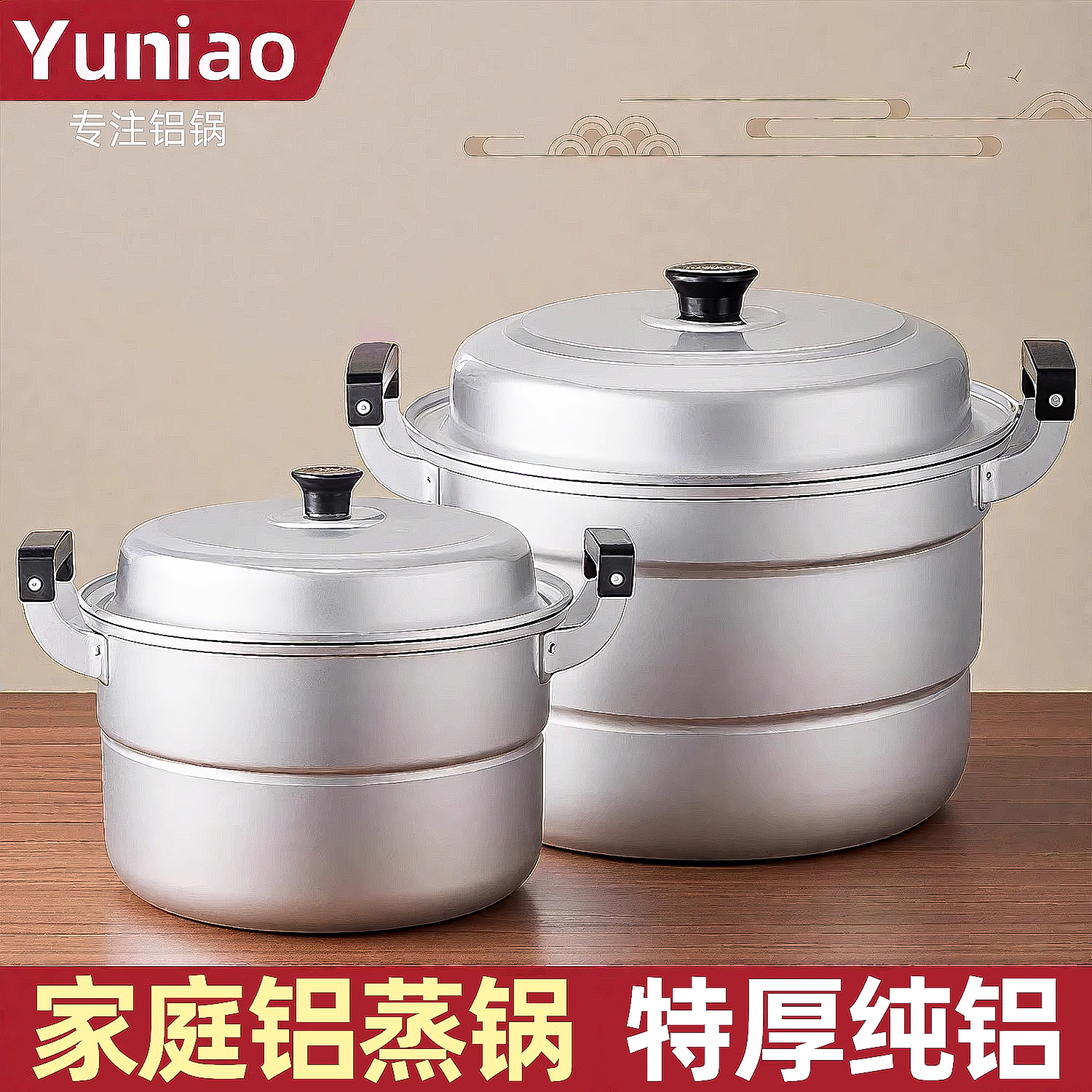 传统铝锅家庭蒸锅特厚纯铝蒸煮炖多层蒸笼蒸馒头蒸鱼锅煤气燃气灶