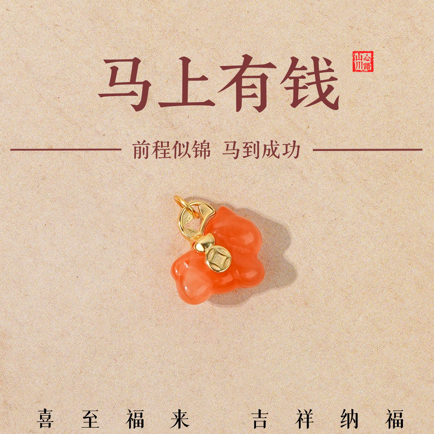 宫里上新南红吊坠女款马上有钱小马玛瑙项链情人节马年本命年礼物