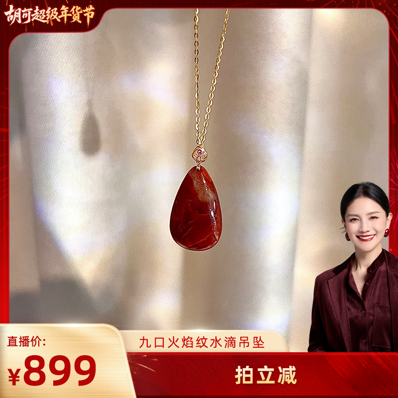 【胡可推荐】红桥 九口料火焰纹水滴形南红吊坠国风中式日常穿搭