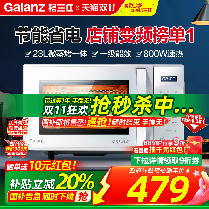 政府补贴格兰仕变频微波炉家用900瓦平板光波炉微蒸烤箱一体机23L