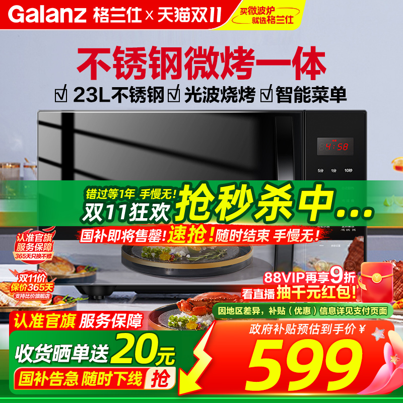 政府补贴格兰仕不锈钢微波炉800W家用微蒸烤箱一体机智能平板光波