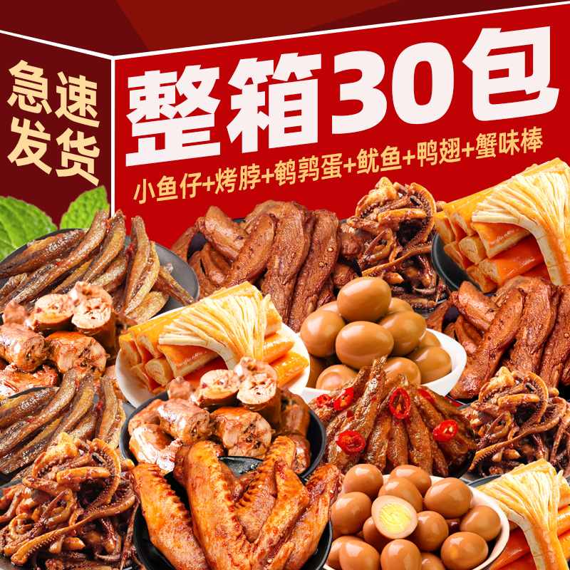 全荤麻辣零食大礼包便宜实惠一整箱30包好吃卤味网红鱼仔鸭翅烤脖