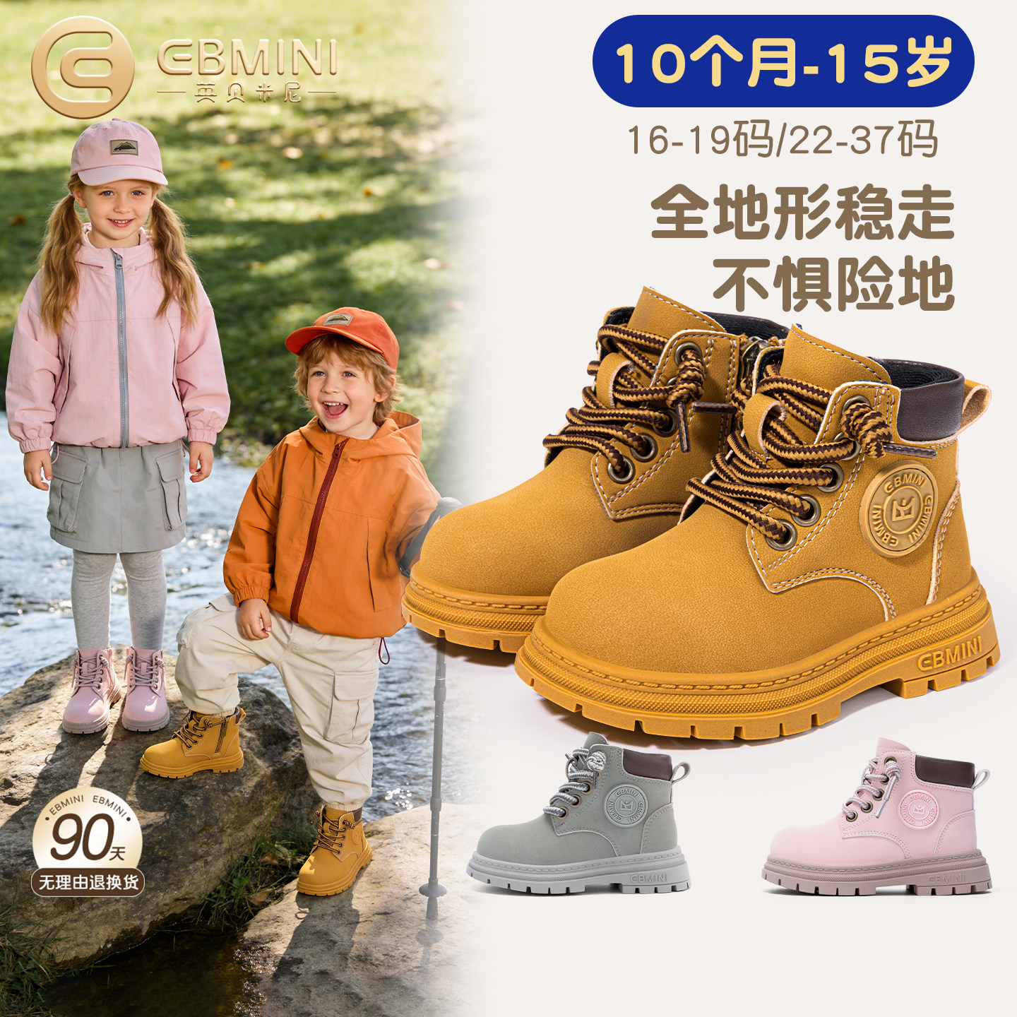 英贝米尼儿童马丁靴子男童短靴男孩大黄靴男宝棉鞋冬季加绒女童靴