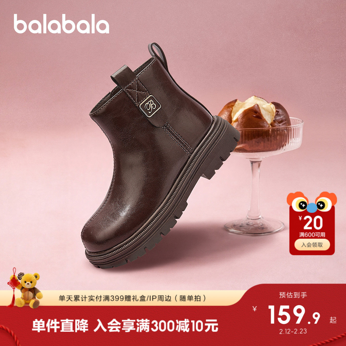 【balaOne】巴拉巴拉童鞋儿童靴子女童马丁靴春秋2026新拜年短靴
