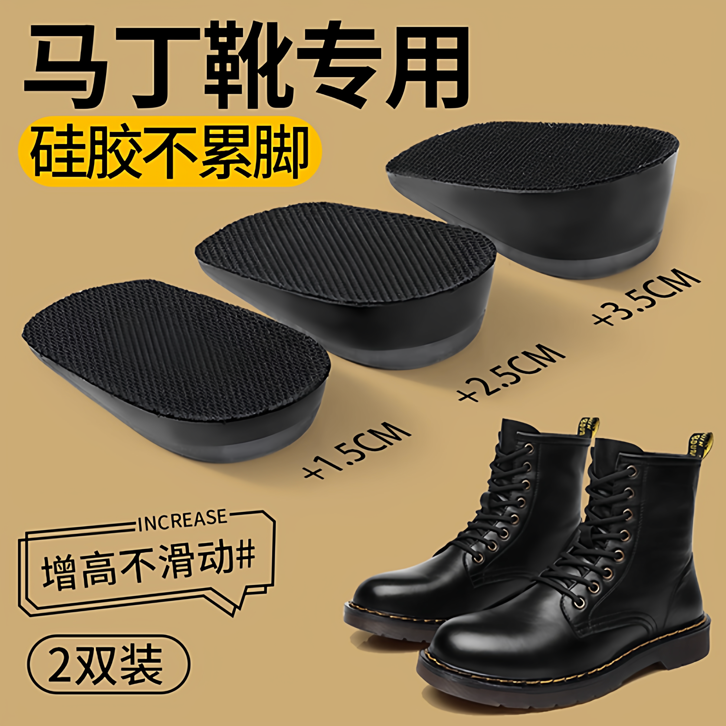 马丁靴内增高鞋垫女款隐形不累脚靴子硅胶增高半垫女士超软底舒适