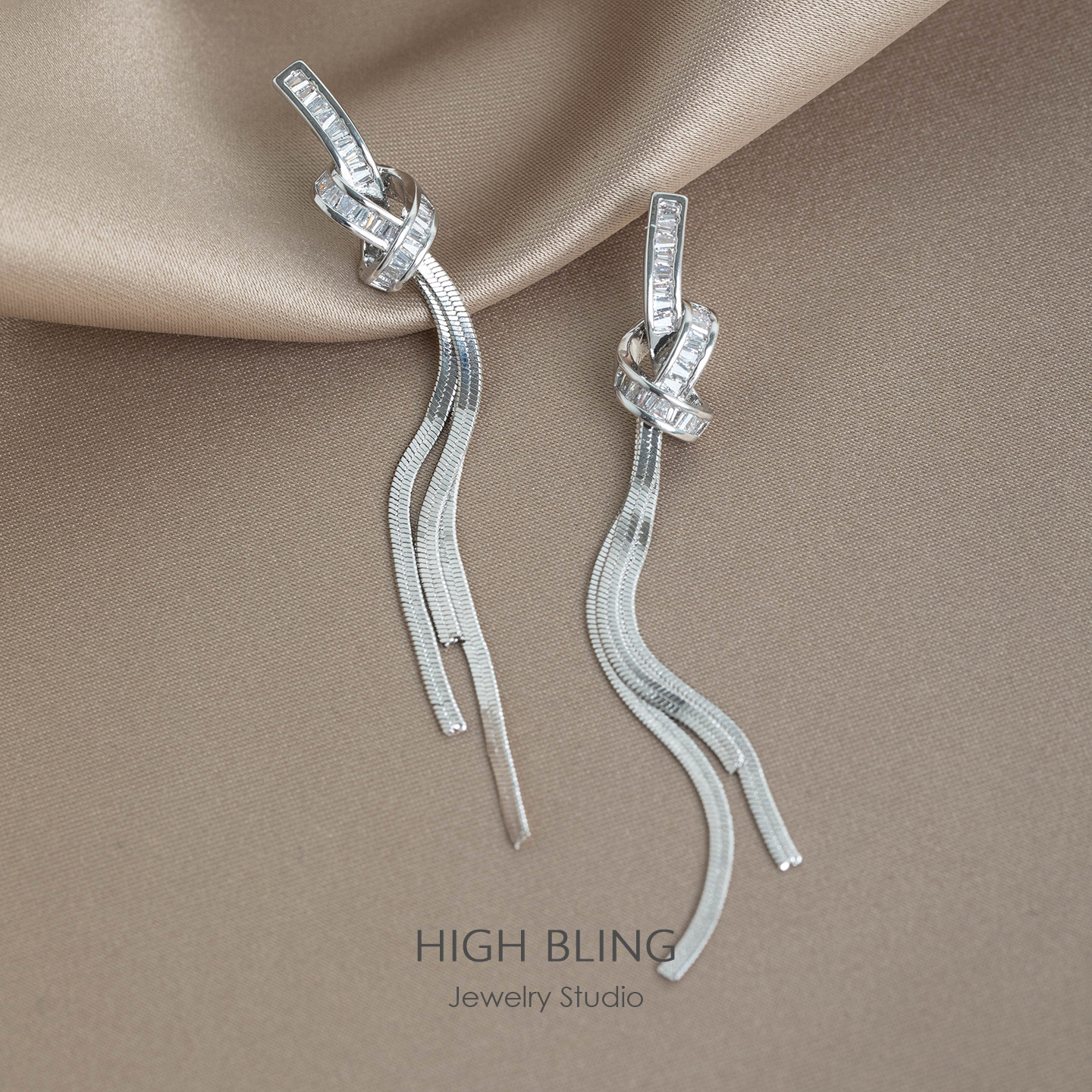 冷淡风百搭简约长款流苏链条水滴无耳洞耳骨夹女时尚高级耳环银色