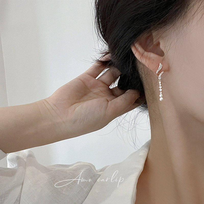 人鱼泪珍珠耳夹女无耳洞小众设计高级感长款显瘦蚊香盘耳饰新款潮