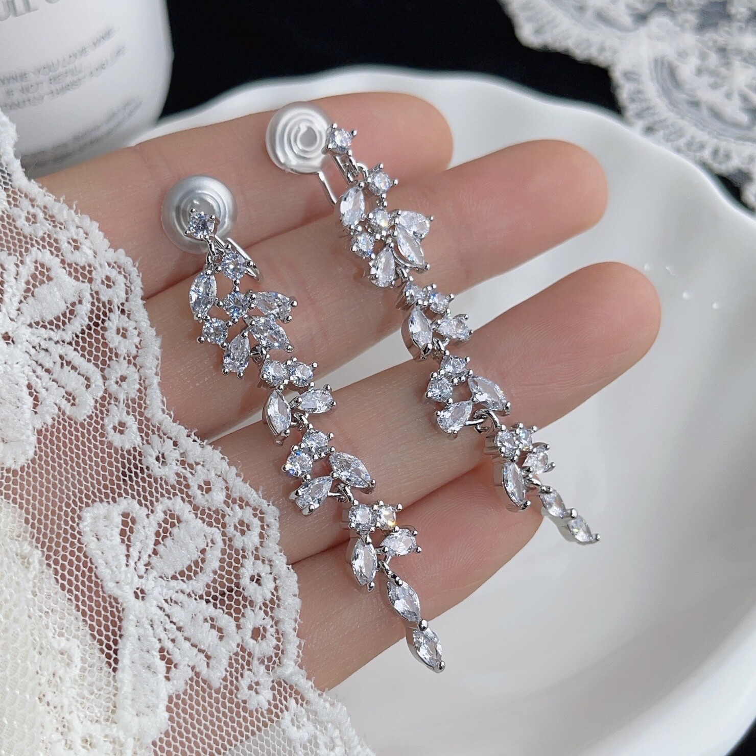 超闪锆石长款流苏无耳洞耳夹女2026新款轻奢高级感耳环方圆脸耳钉