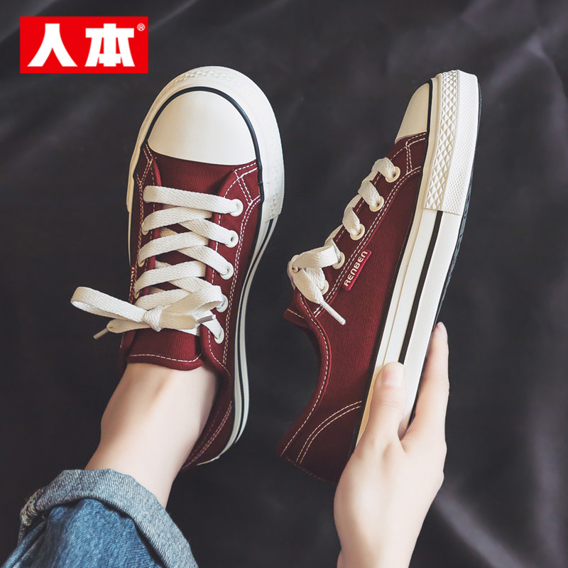 人本女鞋帆布鞋女韩版低帮百搭学生平底透气休闲鞋2026新款板鞋子
