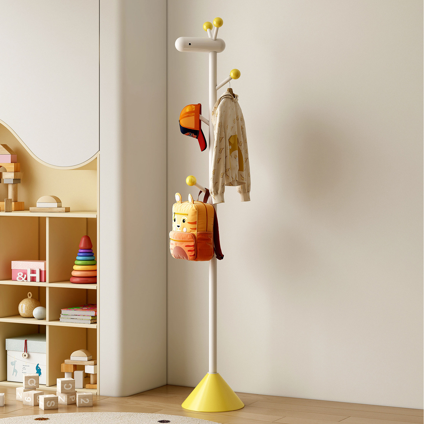 儿童挂衣架卧室内家用落地多巴胺衣帽架门后奶油风卡通可爱衣架子