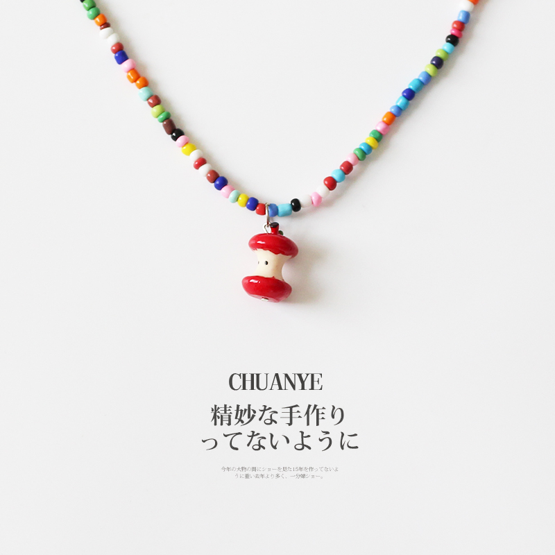 川野日韩彩色苹果锁骨链女生新款甜美小清新吊坠串珠项链头饰发饰