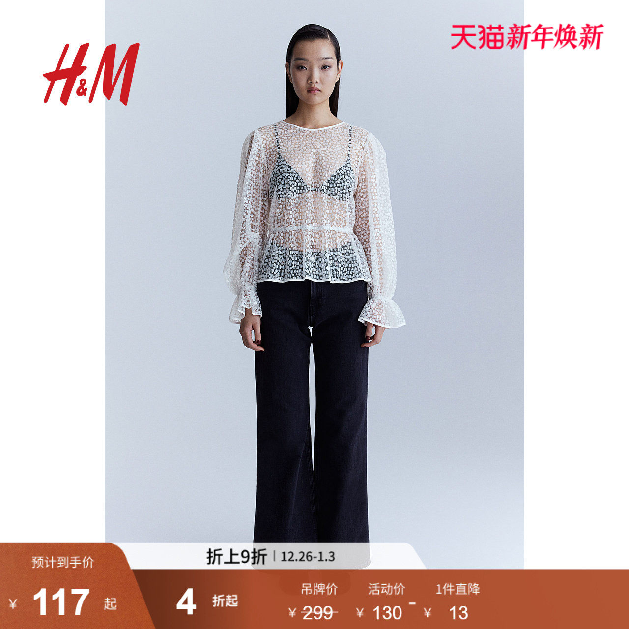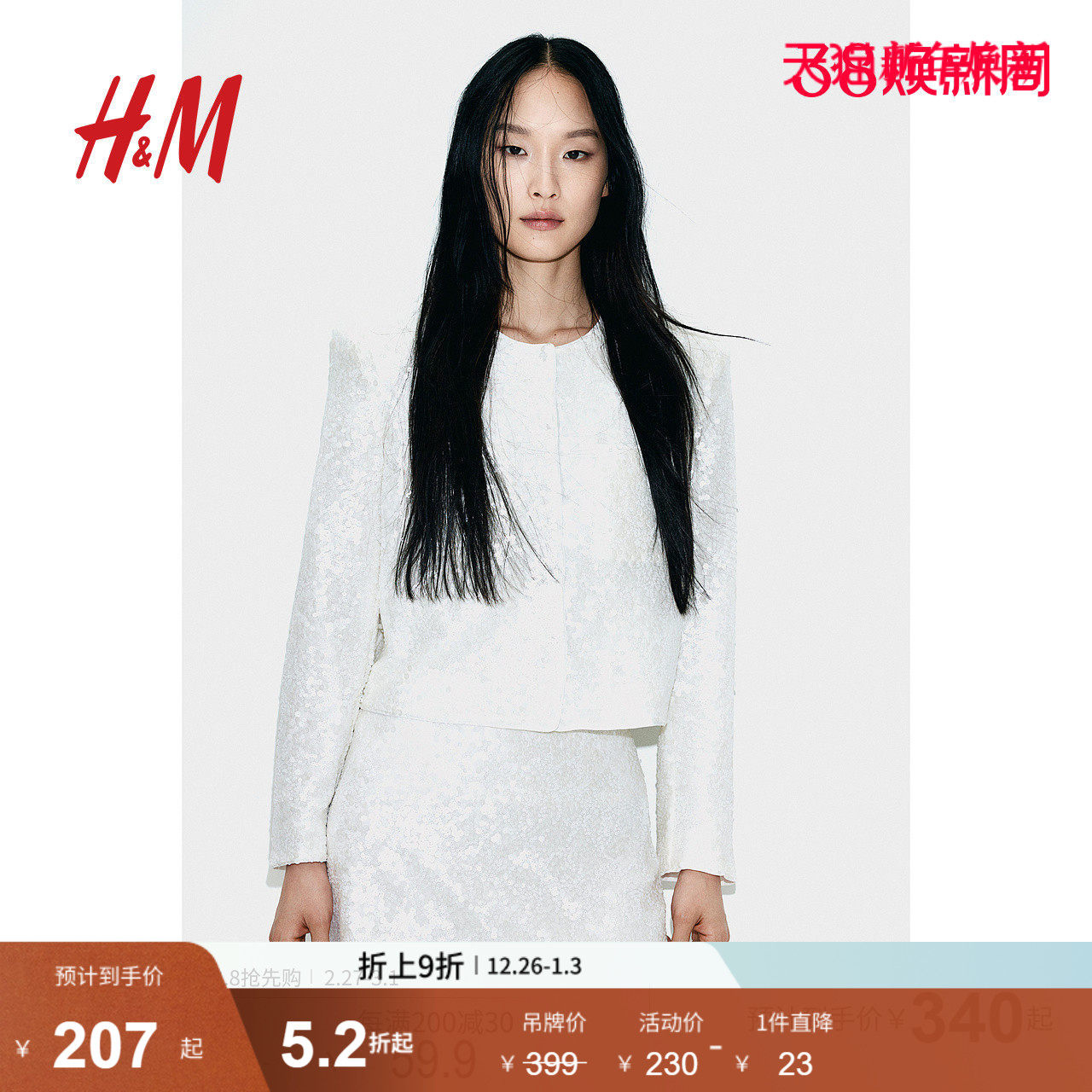 HM女装2025年冬季新款泡泡袖裙式下摆亮片上衣1264457