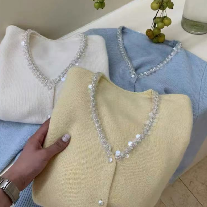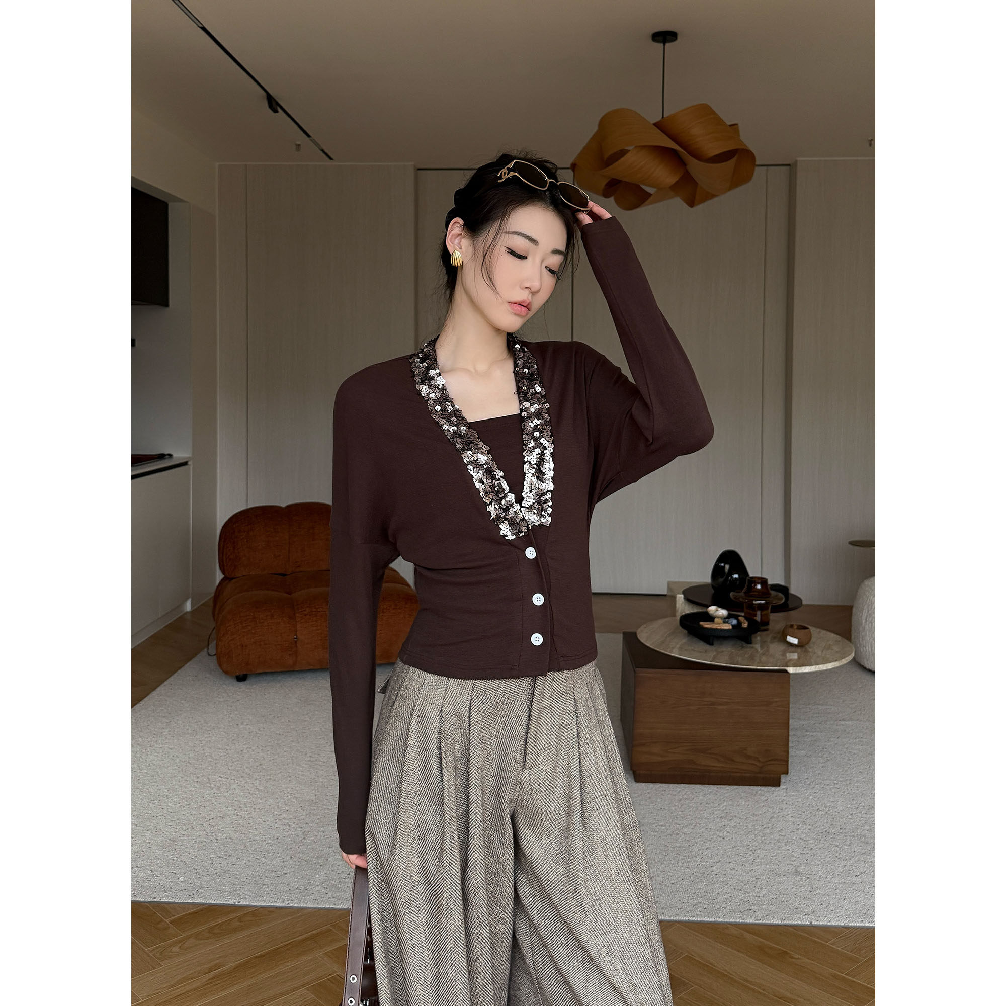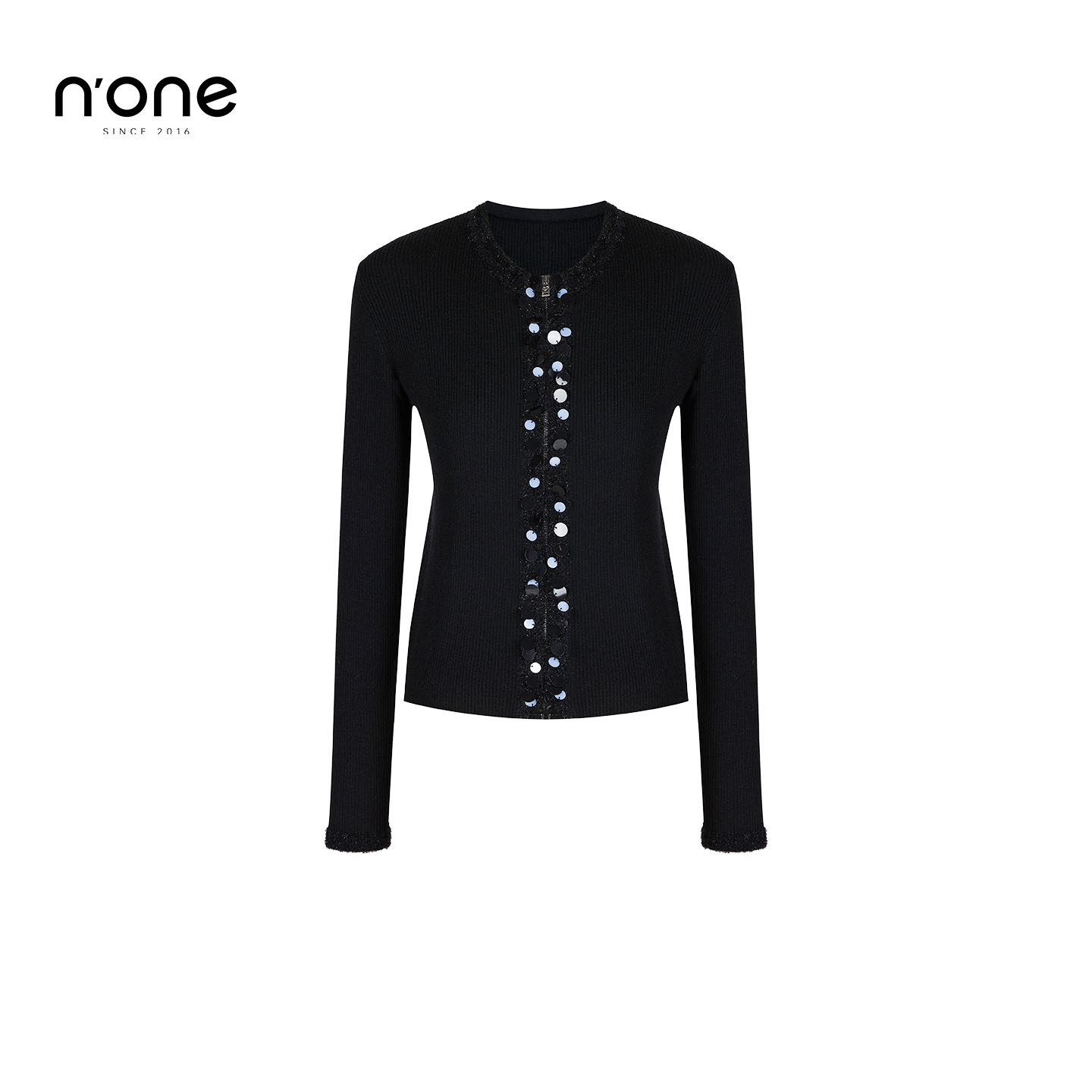 none 超好看的气质修身女士针织开衫2025秋季新品圆领亮片上衣