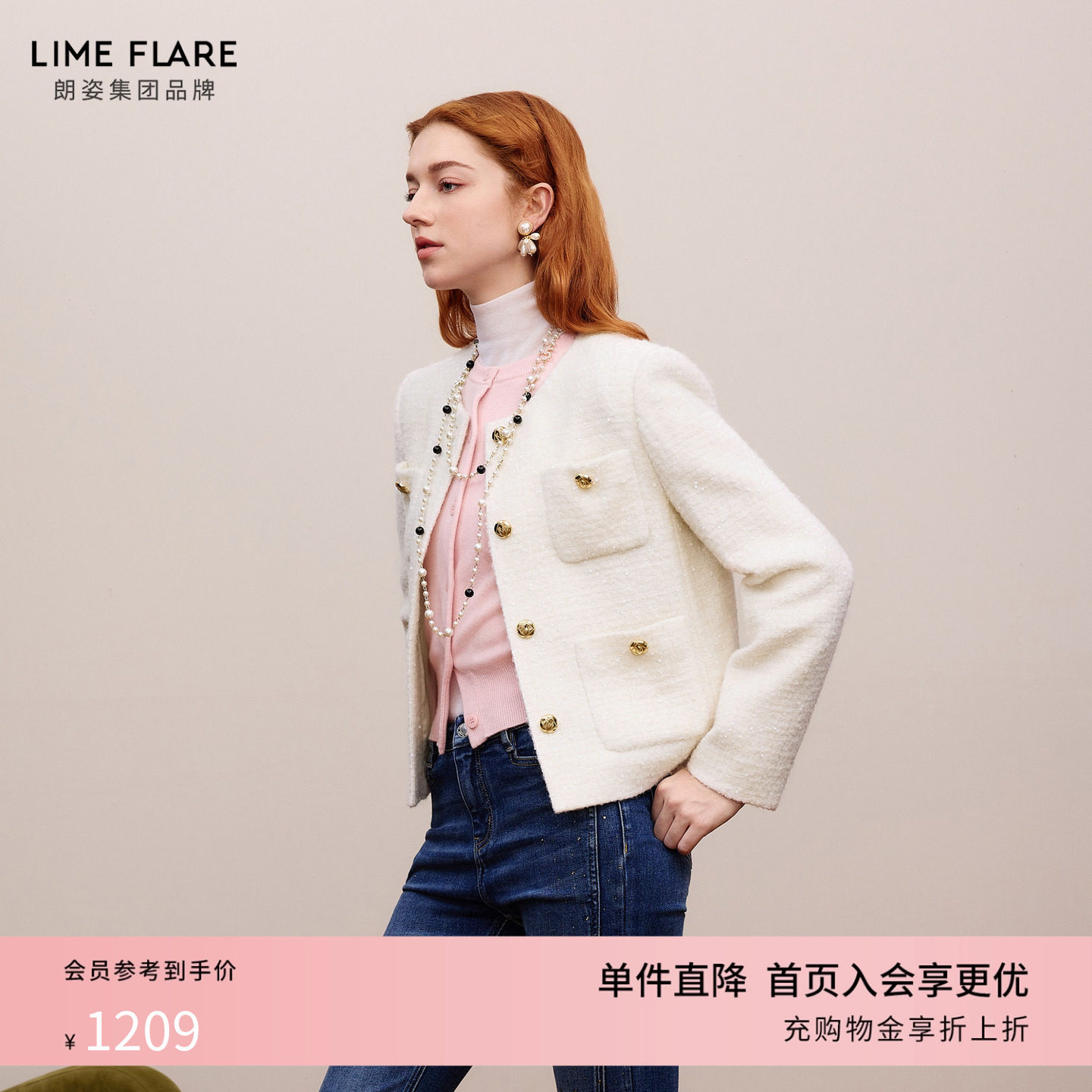 朗姿/莱茵福莱尔精致亮片上衣法式绵羊毛小香风外套女2025冬新款