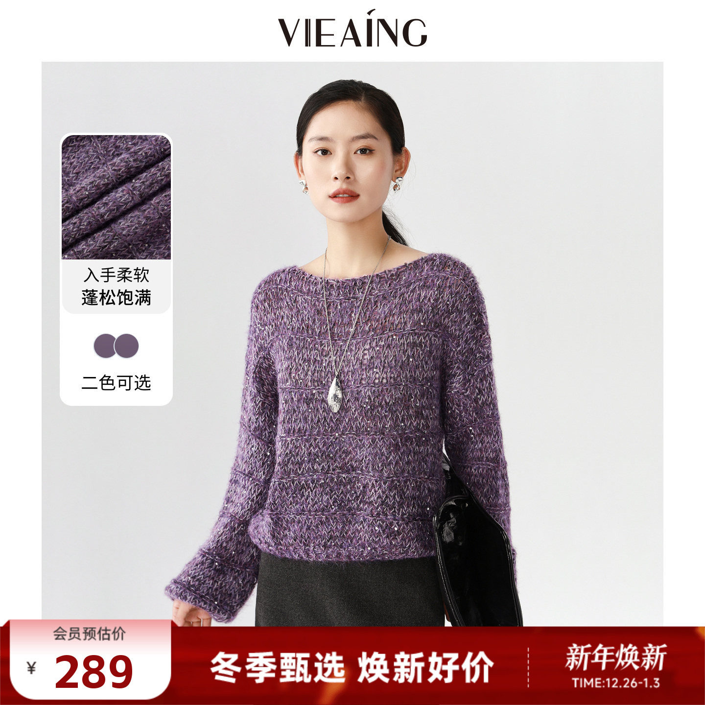 VIEA.ING薇迎商场同款紫色毛衣女2025冬季新款法式针织衫亮片上衣