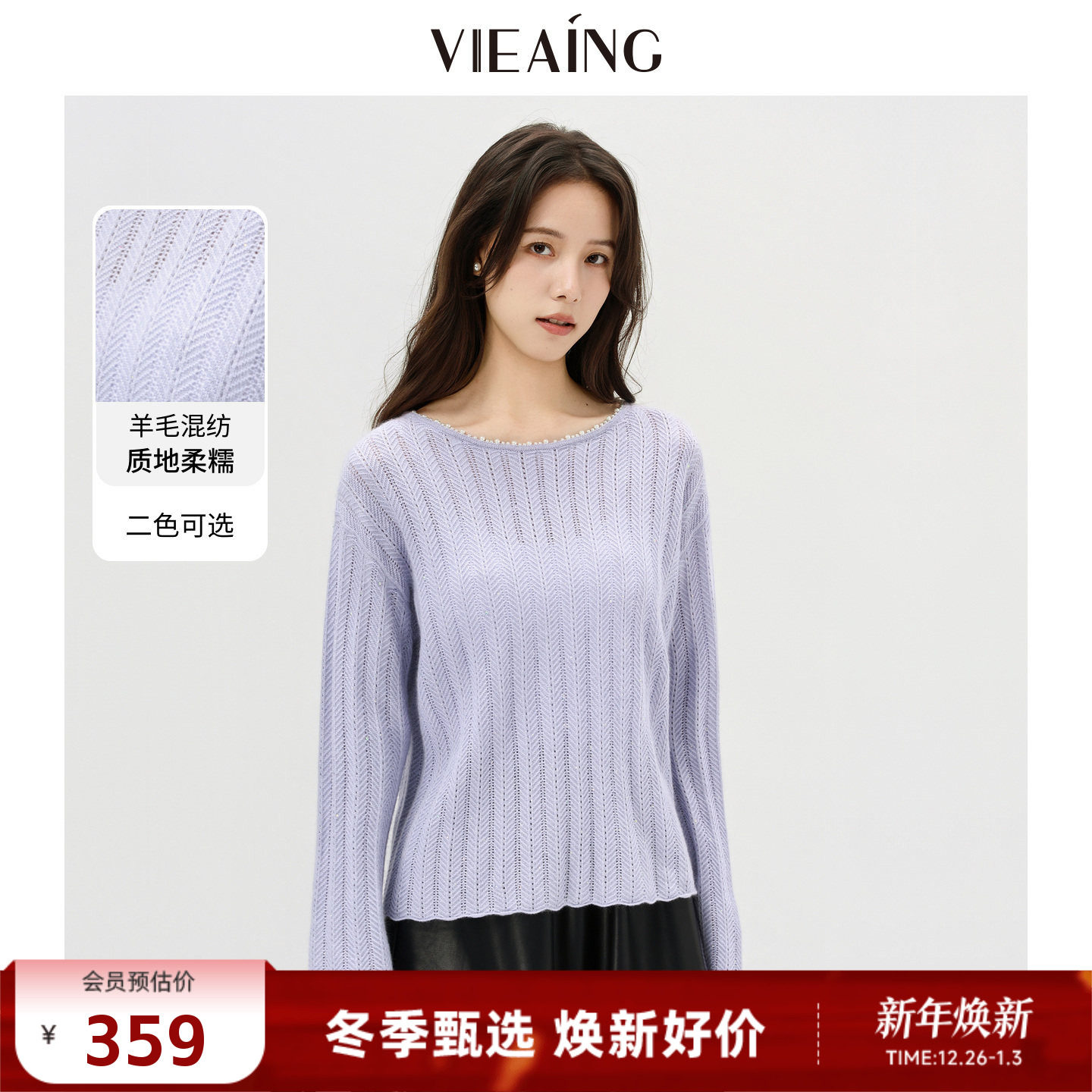 VIEA.ING薇迎商场同款套头毛衣女2025冬新款含羊毛针织衫亮片上衣