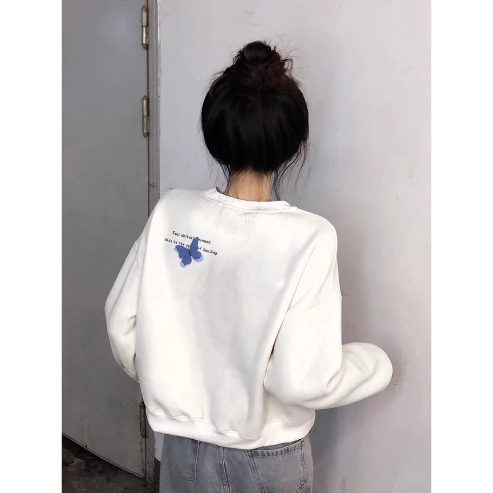MULVAN圆领卫衣女秋冬薄款韩版宽松套头无帽休闲字母刺绣短款上衣