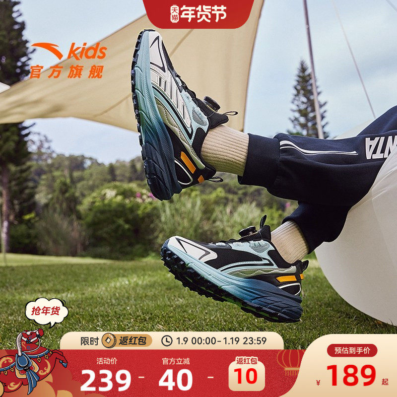 安踏儿童运动鞋男女童鞋2025秋新款户外登山徒步鞋运动跑鞋旋钮鞋