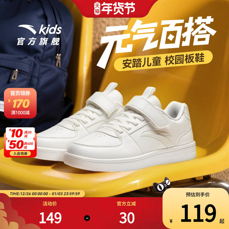 安踏儿童学生小白鞋低帮板鞋男女童春秋新款休闲运动鞋白色滑板鞋
