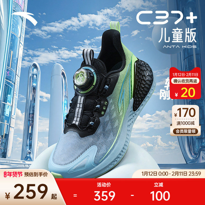 安踏儿童C37+|儿童运动鞋2025冬季新款男童跑鞋女童跑鞋轻便童鞋