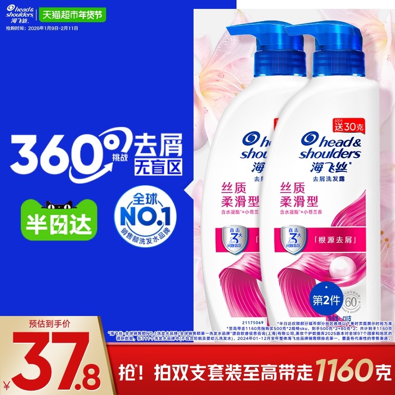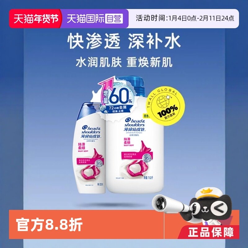 海飞丝洗发水丝质柔滑滋润去屑洗发露柔顺控油蓬松洗头水官方正品