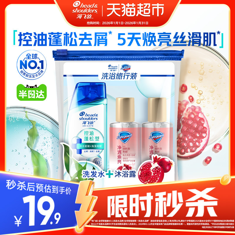 海飞丝洗发水控油蓬松舒肤佳红石榴沐浴露出差旅行套装小瓶洗发露