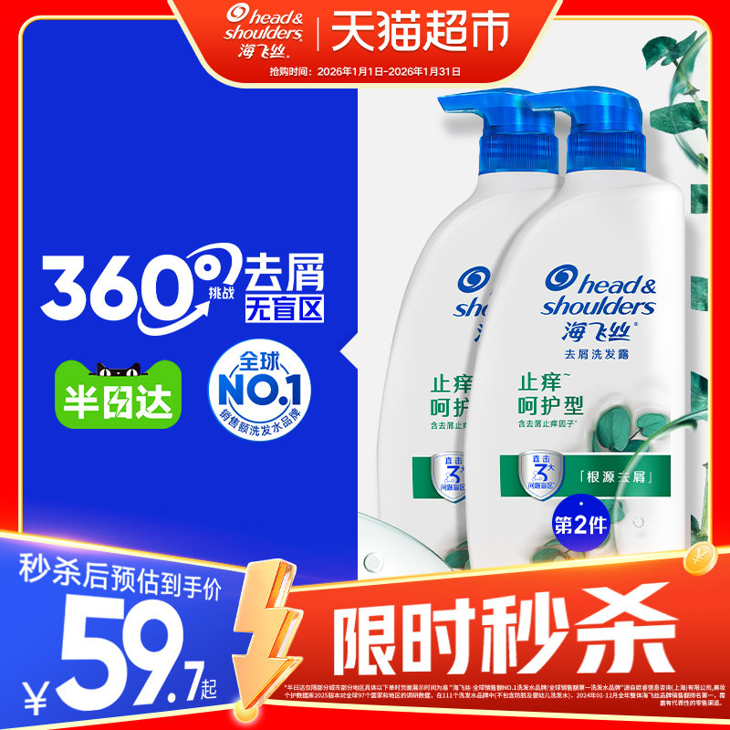 【下拉享优惠】海飞丝洗发水露止痒呵护型去屑去油滋养蓬松洗头水