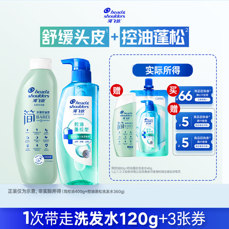 【百补】专享优惠券 送海飞丝洗发水简控油80g+控油蓬松40g
