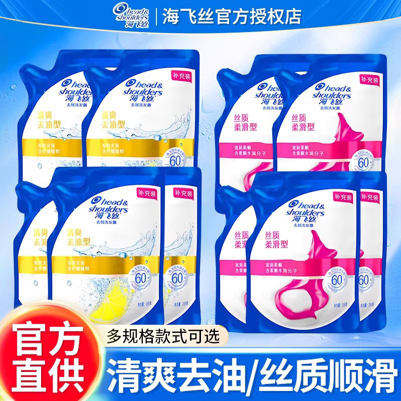 海飞丝洗发水露补充装袋装清爽控油丝质柔滑去屑正品牌官方旗舰店
