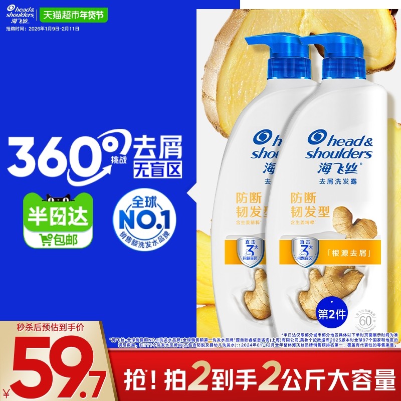 【下拉享优惠】海飞丝洗发水生姜护根防断韧发去屑止痒洗发露男女
