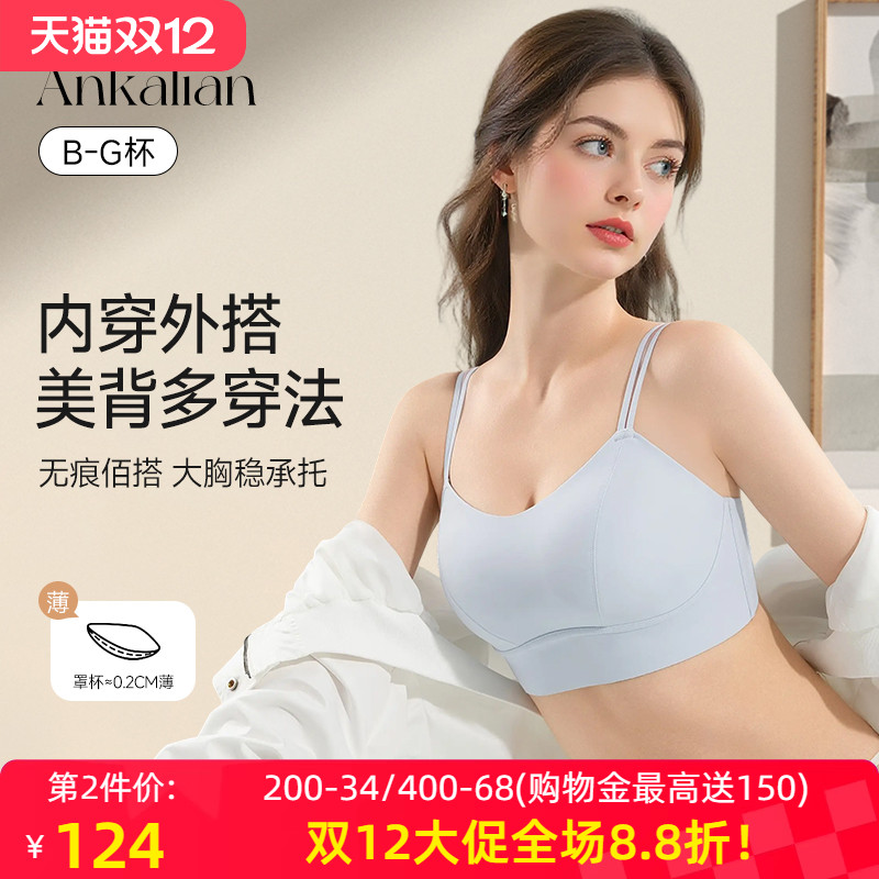 大码无痕无钢圈美背内衣聚拢防下垂吊带一体背心大胸显小文胸爆款