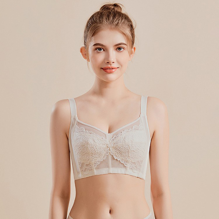爆款跨境前开扣无痕聚拢大码薄款文胸性感蕾丝无钢圈美背内衣包邮