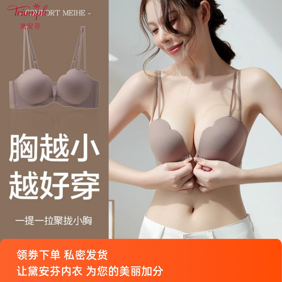 六只兔子前扣内衣女性感深V美背大胸显小法式三角杯无钢圈文胸罩