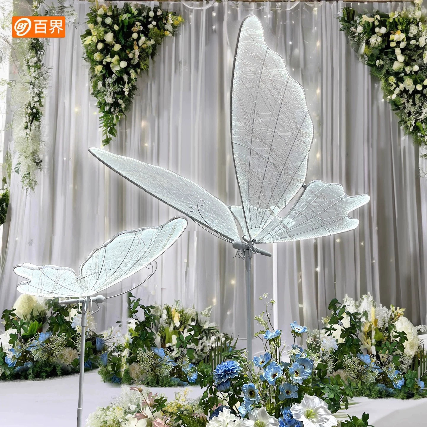 发光蝴蝶婚礼路引吊顶挂件店铺橱窗美陈装饰摆件户外铁艺布置道具