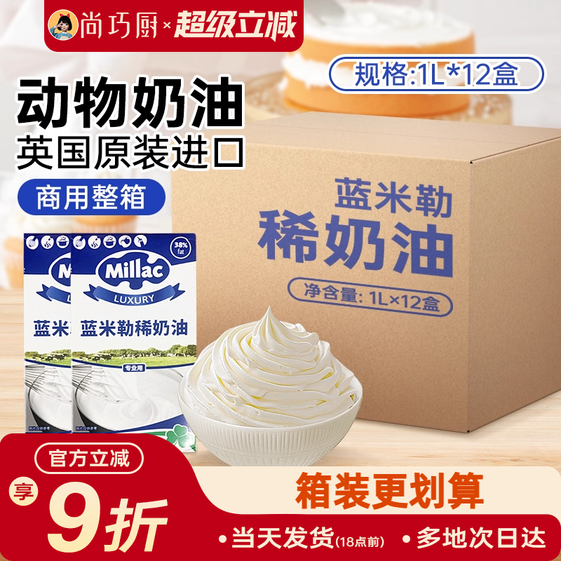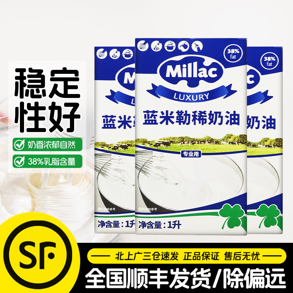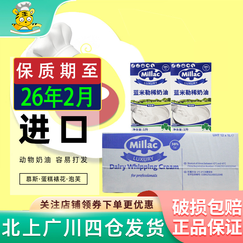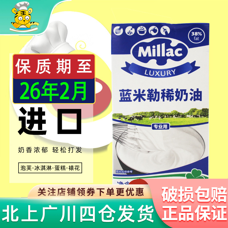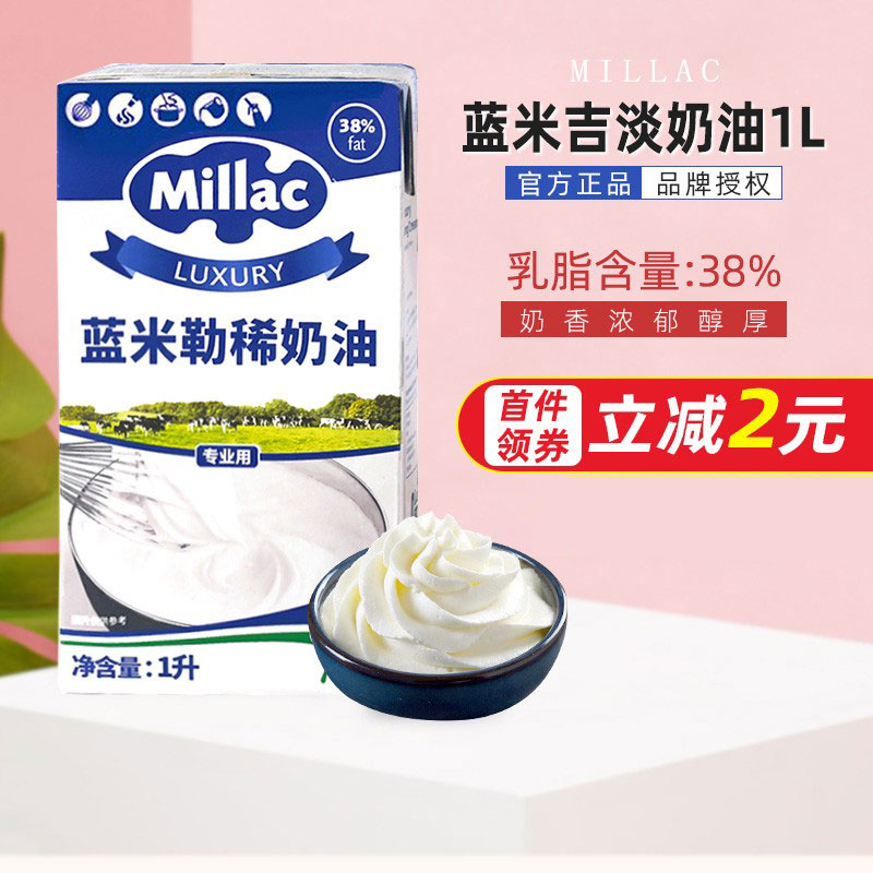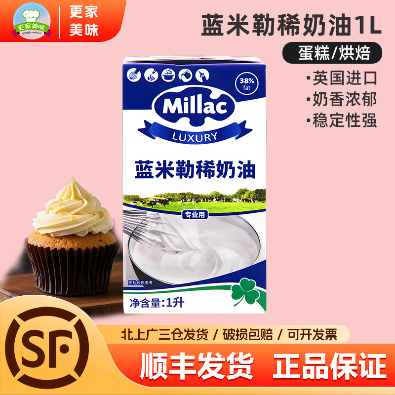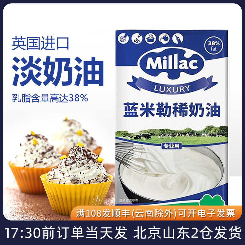 蓝米吉淡奶油1L英国蓝风车米勒稀动物性蛋糕裱花家用烘焙专用材料