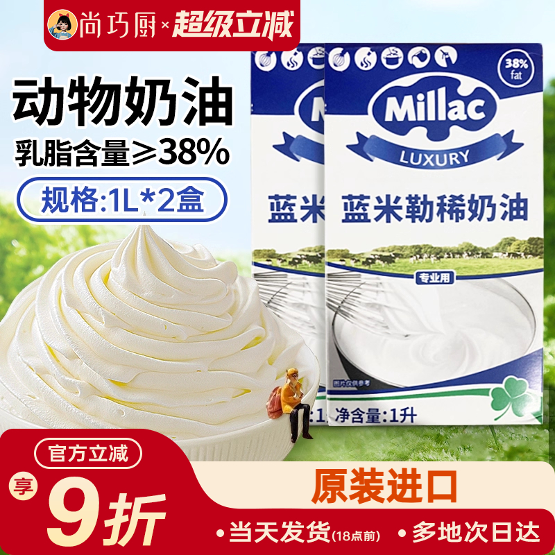 蓝米勒英国进口蓝风车蓝米吉动物稀淡奶油1L*2蛋糕家用烘焙材料