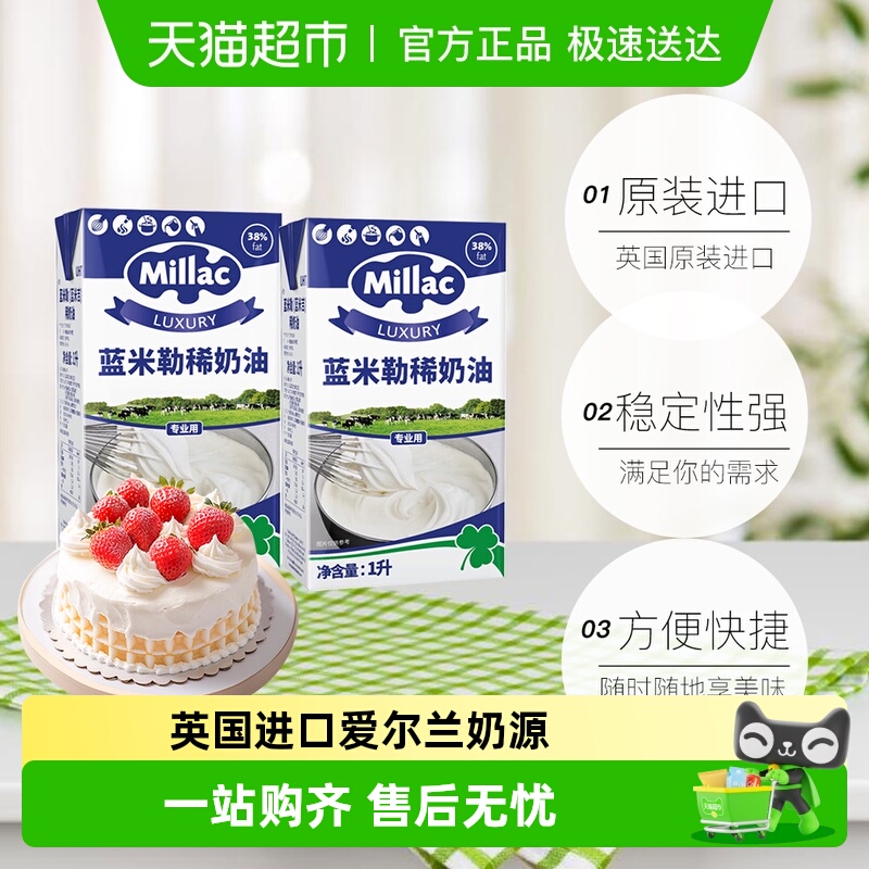 英国蓝风车淡奶油1L*2蓝米吉米勒动物稀奶油蛋糕裱花家用烘焙材料