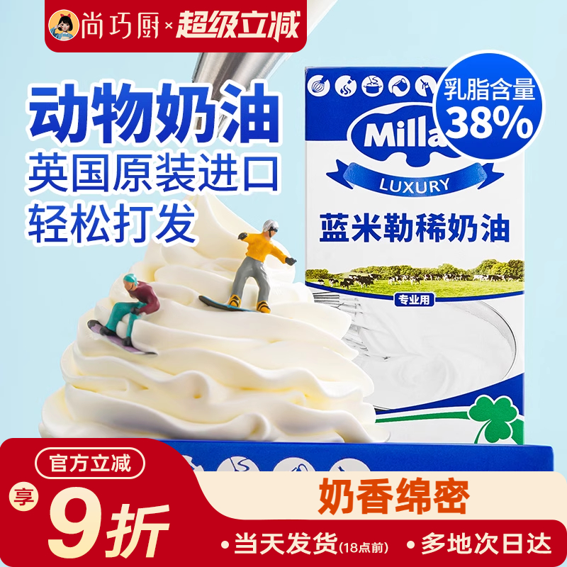 尚巧厨-英国蓝风车动物淡奶油蓝米吉1L裱花专用蛋糕家用烘焙材料