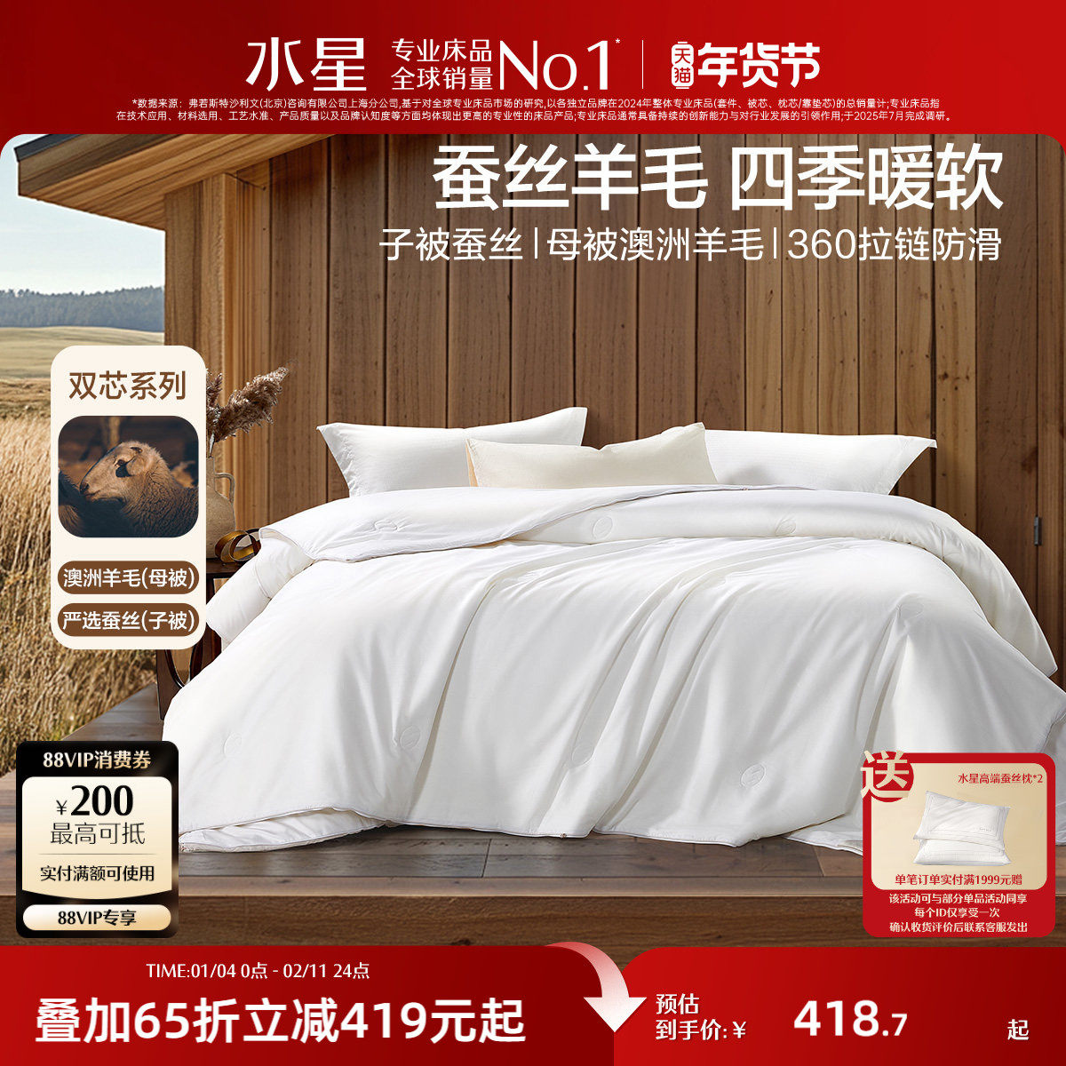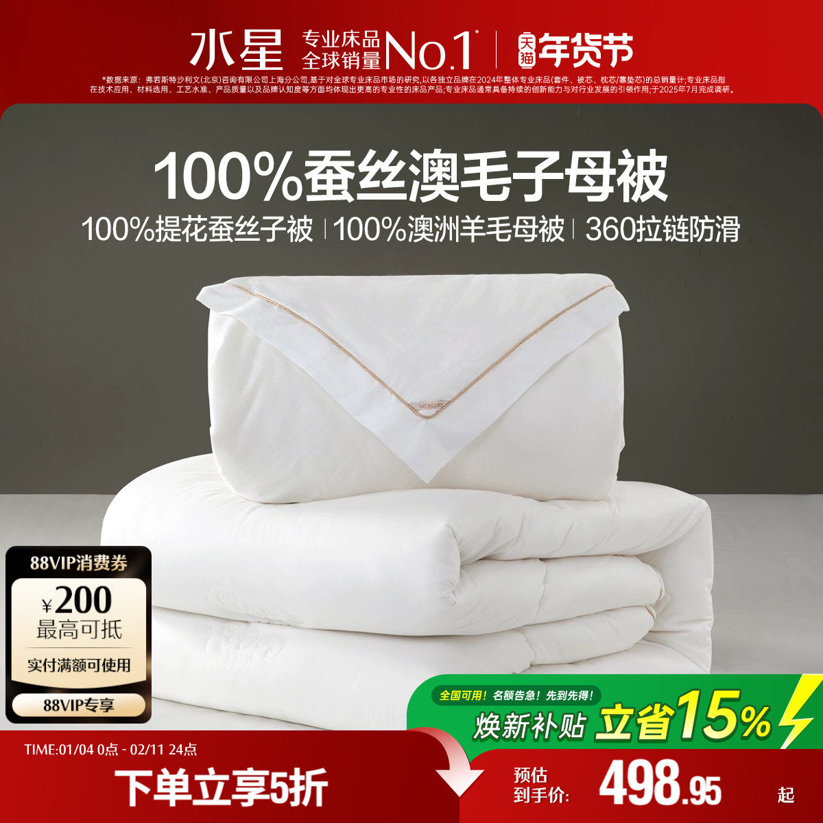 水星家纺抗菌蚕丝澳洲羊毛二合一保暖被单双人子母被子礼物送长辈