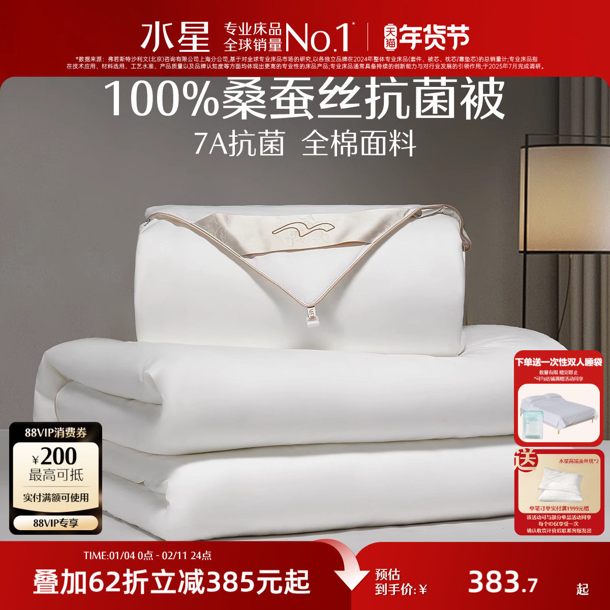 水星家纺100%蚕丝被A类抗菌冬被春秋被单人双人四季被子母被新品