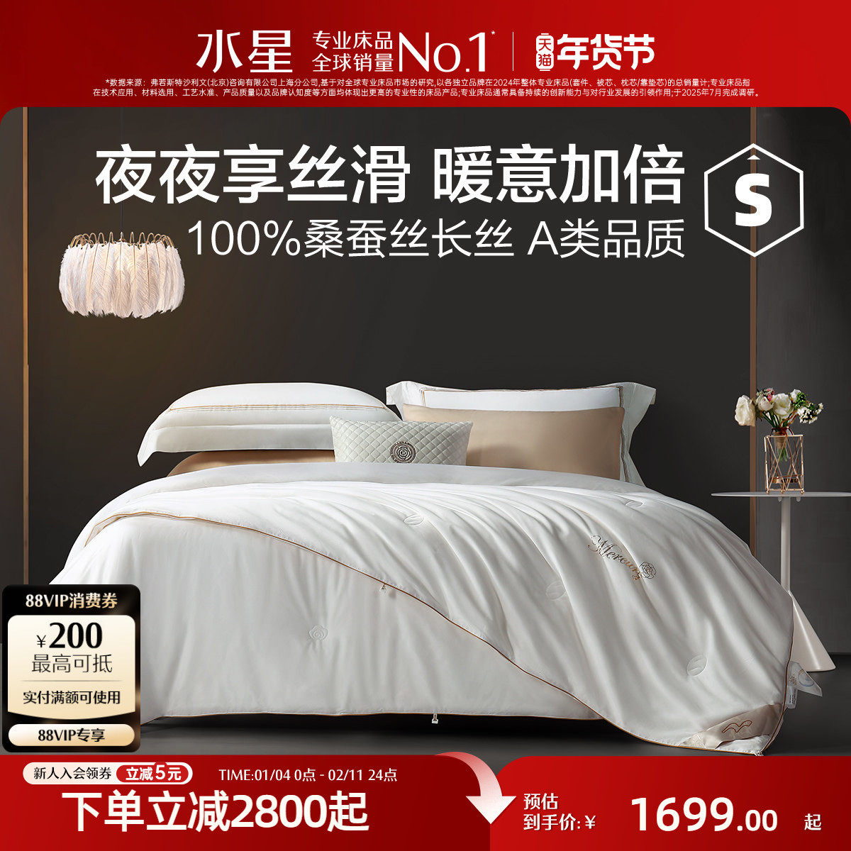 水星家纺100%桑蚕丝被冬被抗菌子母被春秋被二合一婚庆被新年礼赠