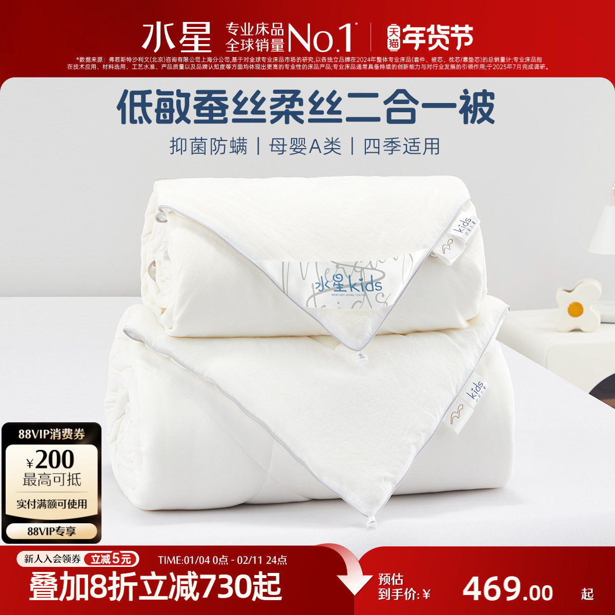 水星家纺母婴A类全棉低敏蚕丝被儿童子母被冬被四季通用新年礼物