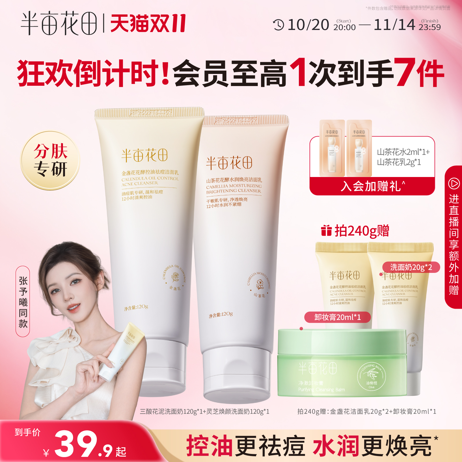 半亩花田洗面奶氨基酸洁面乳泡沫深层清洁毛孔控油保湿补水学生女