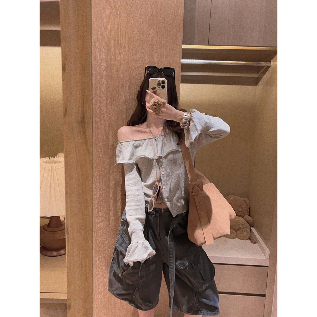 - 针织衫露肩修身