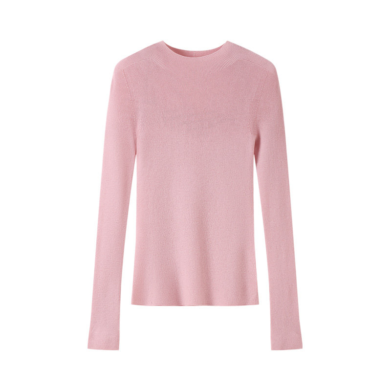pusumede 简色画卷 半高领中袖正肩羊毛针织衫女气质修身内搭上衣